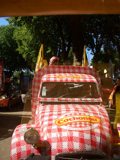 Jeudi 8 juillet, j’ai eu la chance d’être invité par Cochonou pour suivre l’étape Epernay – Montargis dans la limousine 2cv aux couleurs de la marque au milieu des autres 2cv dédiées à la distribution des saucissons et des bobs.