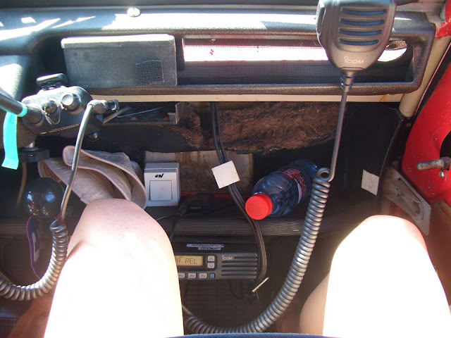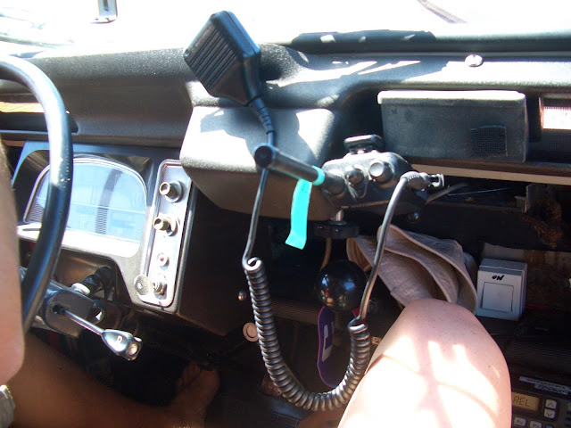 La place passager avec les équipements de com. Radio caravane pour les communications inter-caravanes et avec la direction de la caravane, talkie pour les communications entre les véhicules de l’équipe, bouton d’allumage, extinction de la musique etc.